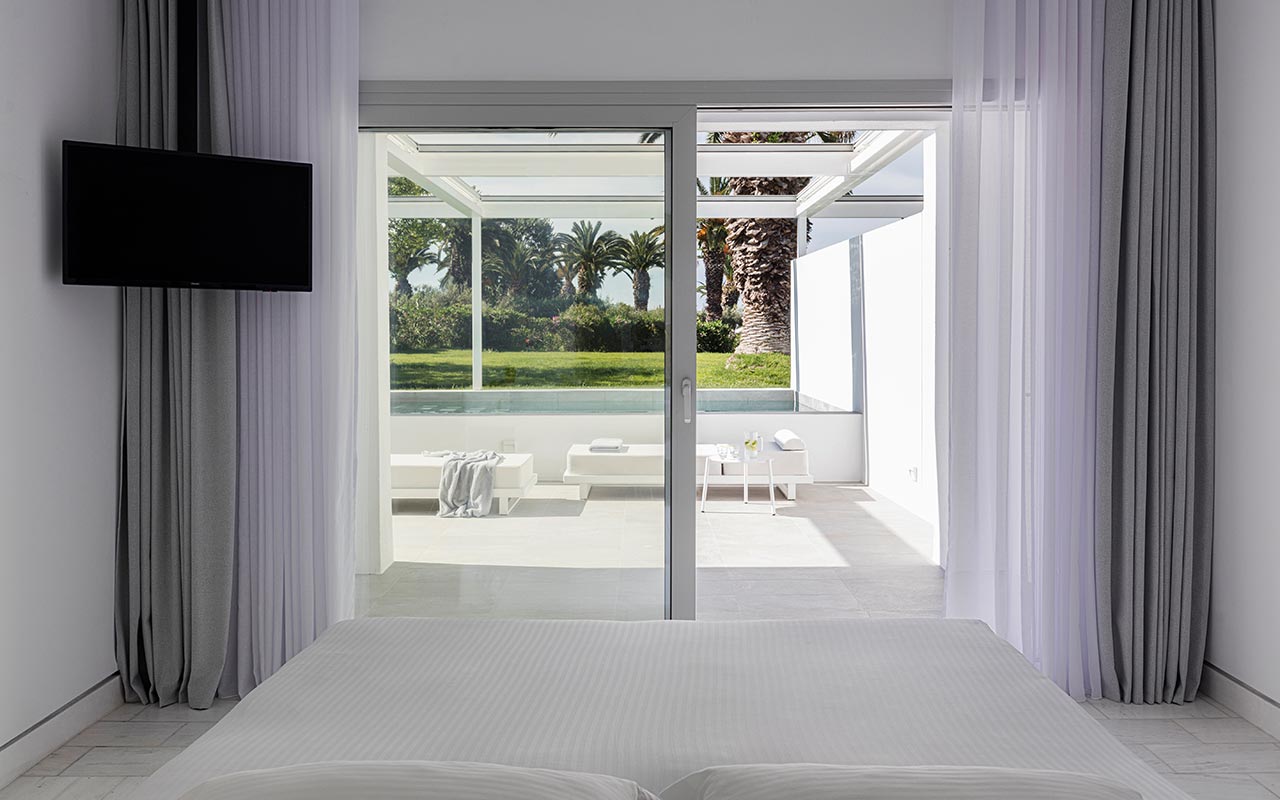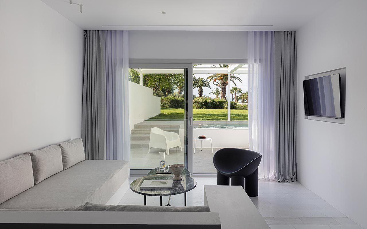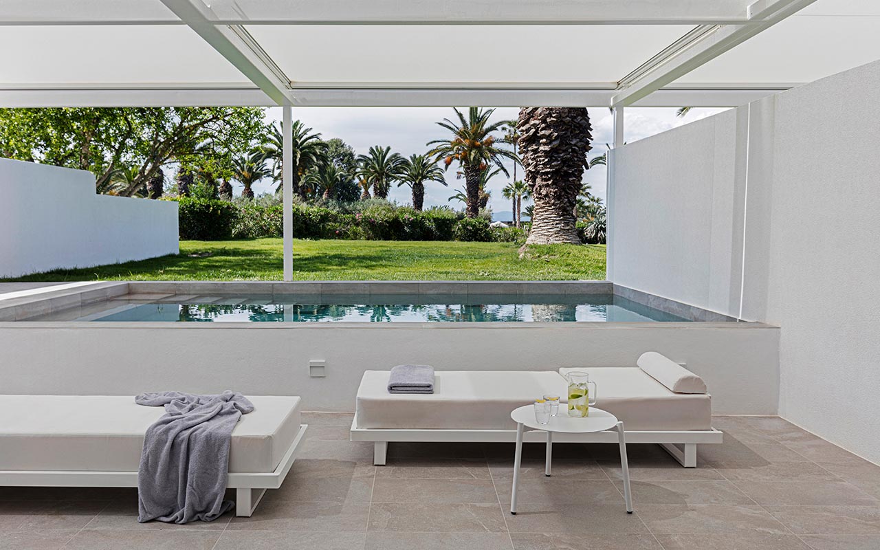 This Two-Bedroom Suite with Private Pool provides a living room with two sofa beds, two separate bedrooms and a big terrace.